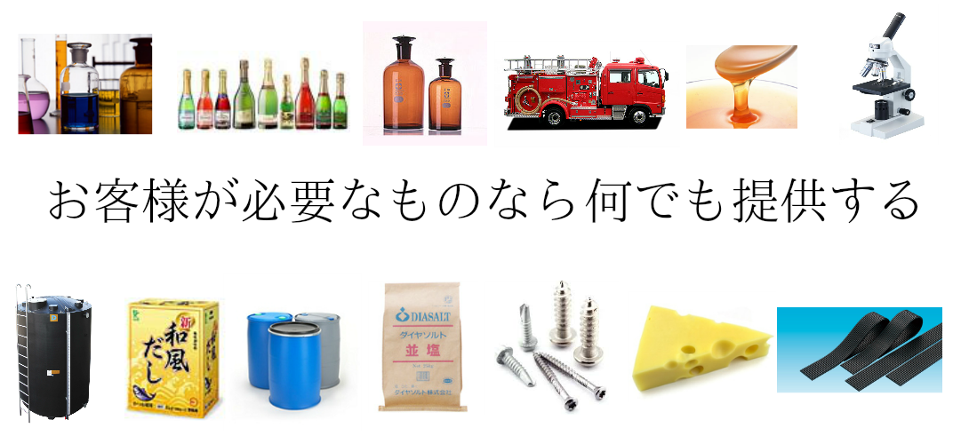 当社では、化学工業薬品における高度な専門知識と、独自のネットワークをフル活用した商品及び情報をタイムリーに提供し、顧客ニーズに応えるべく努めています。他社に勝るスピードとメーカー(仕入先)及び顧客とのパートナーシップを大切にし、顧客の経営資源の効率的運用に貢献したいと考えております。また、当社では在庫管理・物流機能などを加え広範囲なニーズにお応えしています。創業以来の実績と経験をベースに、更なる発展を目指します!